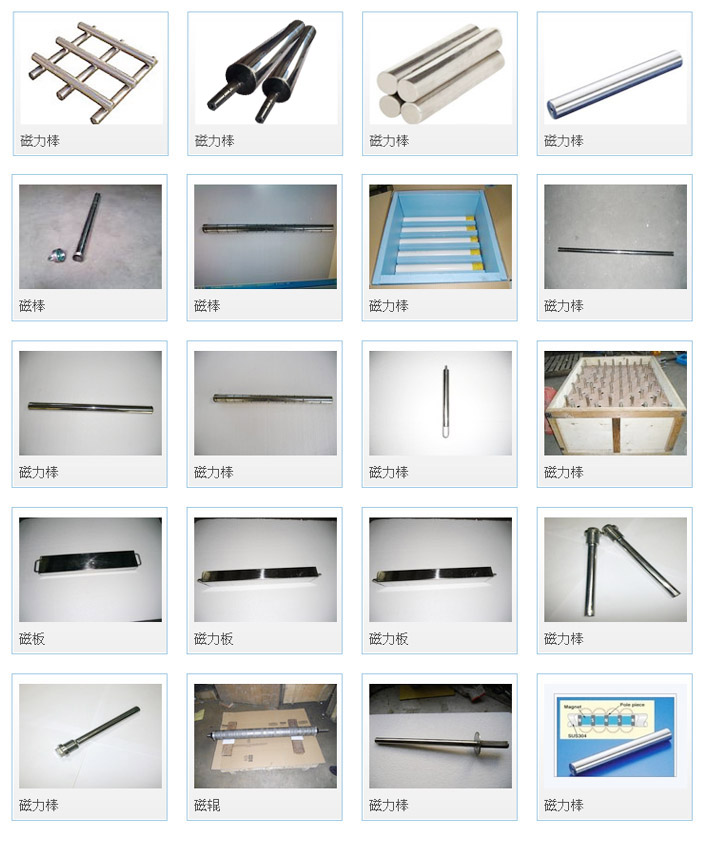 磁棒是用永磁材料經過特殊磁路設計而成的,作用是吸附導磁物質,達到純化的理想效果,起到保證設備和產品的安全的目的,廣泛應用于化工,冶金,食品,陶瓷,紡織,醫療等行業。 磁棒的外徑正常在12mm--50mm,表面磁場可達12000GS ,可根據客戶要求定制不同規格,尺寸,強度的高強磁棒。(方管高強磁棒亦可定制)磁性過濾器就是由數根高強磁棒組合在一個固定不銹鋼架上而構成,當導磁物質通過時,收到強磁的吸引,將導磁物質牢牢的吸附在磁棒的管壁上,達到保證設備的完好和產品的安全的目的。磁性過濾器的尺寸大小,框架的形狀都可根據客戶的要求定制,并可為客戶提供技術支持。